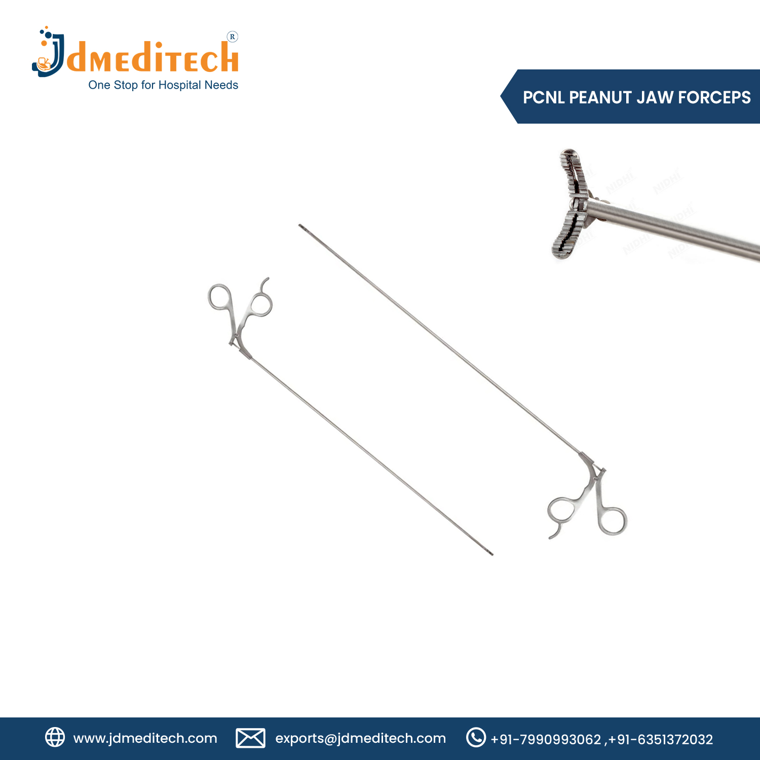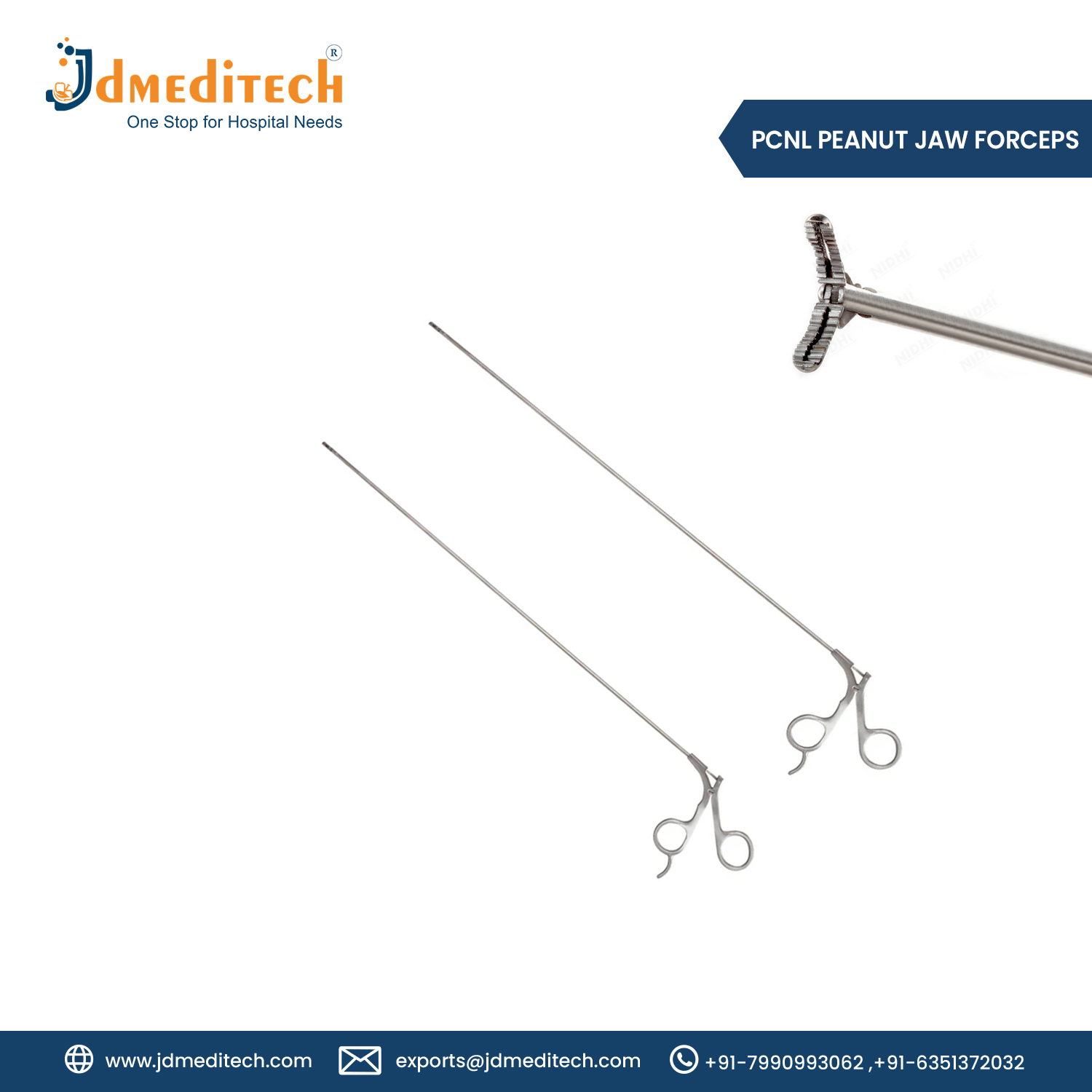 PCNL Peanut Jaw Forceps are specialized surgical instruments used during Percutaneous Nephrolithotomy (PCNL) procedures to remove or grasp kidney stones and tissue fragments.