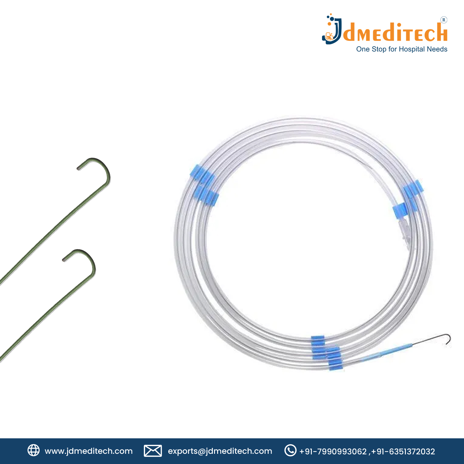 A PTFE guide wire is a thin, flexible medical wire coated with Polytetrafluoroethylene (PTFE)—commonly known as Teflon. It is used to guide catheters, stents, or other medical devices safely through blood vessels, urinary tracts, or body ducts during minimally invasive procedures such as angioplasty, catheterization, or urological surgeries.